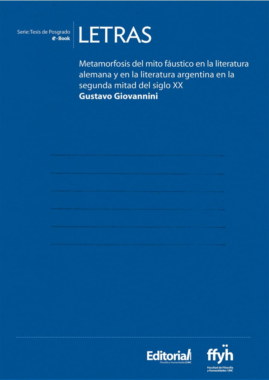 En esta tesis se analiza la manera en que la literatura de lengua alemana y la argentina, desde la década de 1950 hasta fines del siglo XX, retoman un asunto literario legado por una larga tradición europea: el mito fáustico. El estudio de una selección de obras narrativas y dramáticas producidas en un mismo lapso temporal en dos literaturas muy alejadas desde lo lingüístico, geográfico y cultural permite dilucidar los respectivos procesos de simbolización literaria, sus manifiestas diferencias y también sus afinidades que se explican, en gran medida, por la presencia de hipotextos comunes considerados clásicos en ambos sistemas literarios. En este sentido se percibe la importancia de tres textos fundamentales de la tradición fáustica tanto en Alemania como en Argentina: La Historia von Dr. Johann Fausten (1587), Faust de Johann Wolfgang von Goethe (1808-1832) y Doktor Faustus de Thomas Mann (1947).