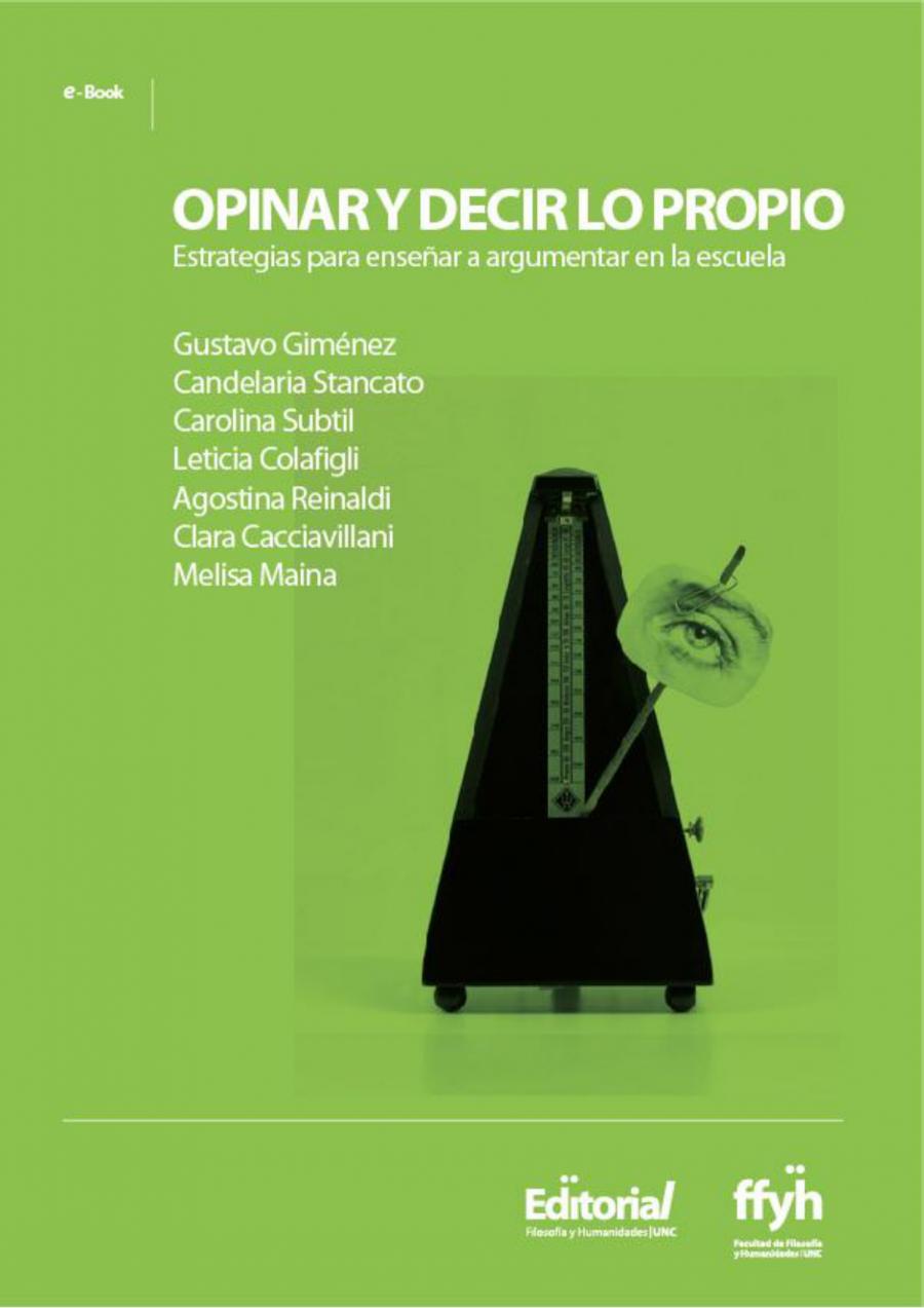 Una primera parte que contiene los capítulos 1, 2, 3, 4 y 5 con desarrollos conceptuales acerca de la argumentación y avances desde distintas líneas sobre la interpretación de la enseñanza de la argumentación a través de los manuales escolares. Una segunda parte que ofrece una propuesta de enseñanza concreta que hemos titulado “opinar y decir lo propio”. el título intenta expresar una aspiración didáctica de todo el equipo: que la participación argumentativa del alumno no sea “el punto de llegada” de la actividad para interpretar lo que otros dicen y reforzar los mismos sentidos, sino que sea el “punto de partida”. Esto es, movilizar la propia experiencia y palabra de los estudiantes para tramarla (y confrontarla, por qué no) con la de argumentadores profesionales (columnistas, periodistas, políticos, etc.).