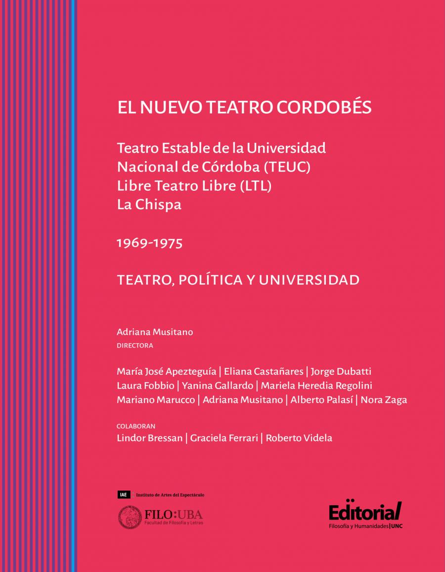 Este es uno de los tres libros digitales producidos entre la Facultad de Filosofía y Humanidades y el Instituto de Artes del Espectáculo de la UBA, en el marco del proyecto de investigación “Teatro, Política y Universidad. Córdoba, 1965-1975”.
