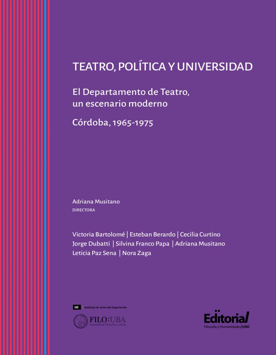 Este es uno de los tres tomos de los libros digitales producidos entre la Facultad de Filosofía y Humanidades y el Instituto de Artes del Espectáculo de la UBA, en el marco del proyecto de investigación “Teatro, Política y Universidad. Córdoba, 1965-1975”.